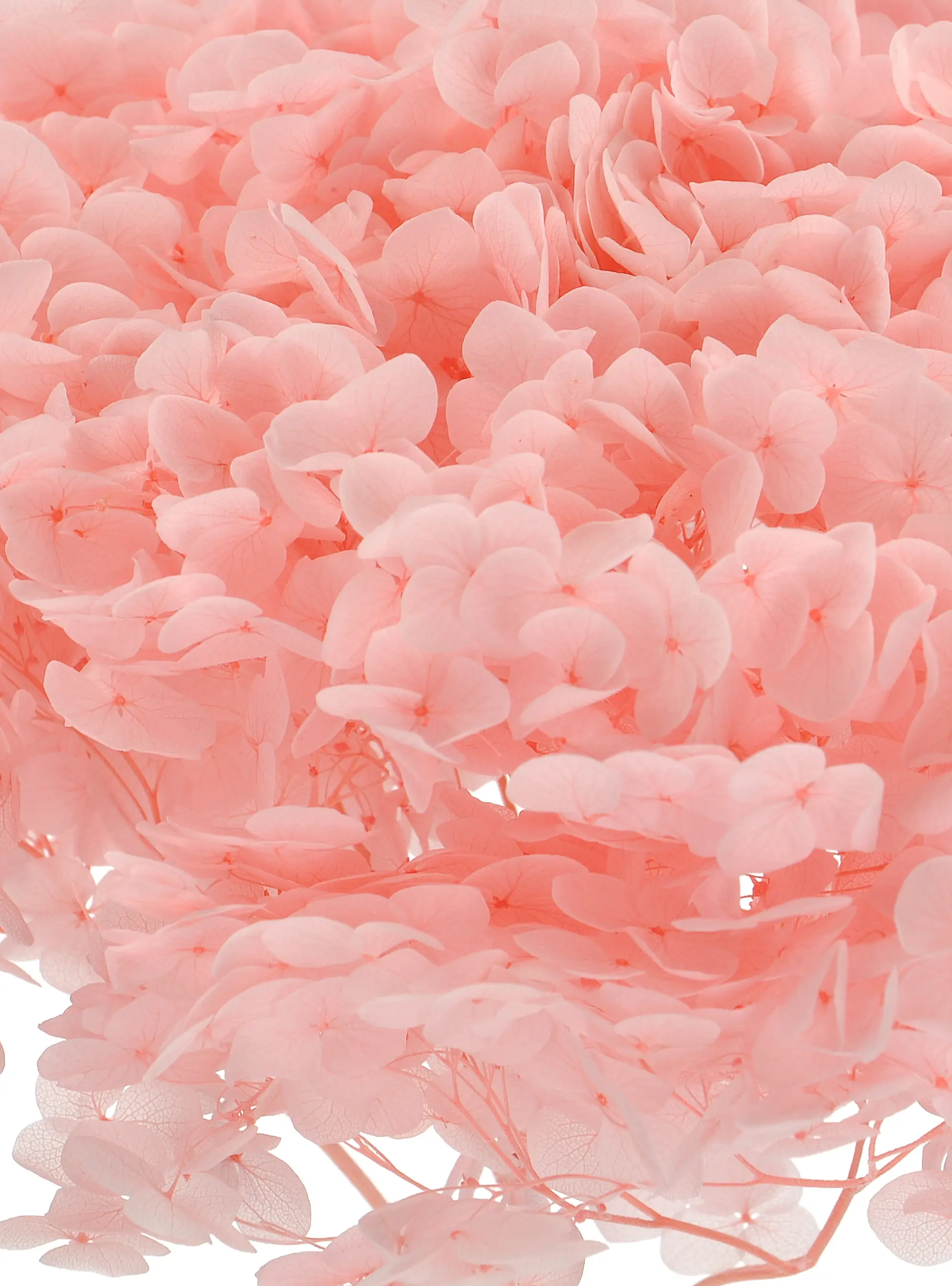Hydrangea - die vollen, kugelförmigen Blütenstände der stabilisierten Hortensie sind wie geschaffen, um eine Hauptrolle zu spielen. Ein Strauß aus getrockneten Hortensien in Rosa ist die perfekte Ergänzung für eine glamouröse Einrichtung.