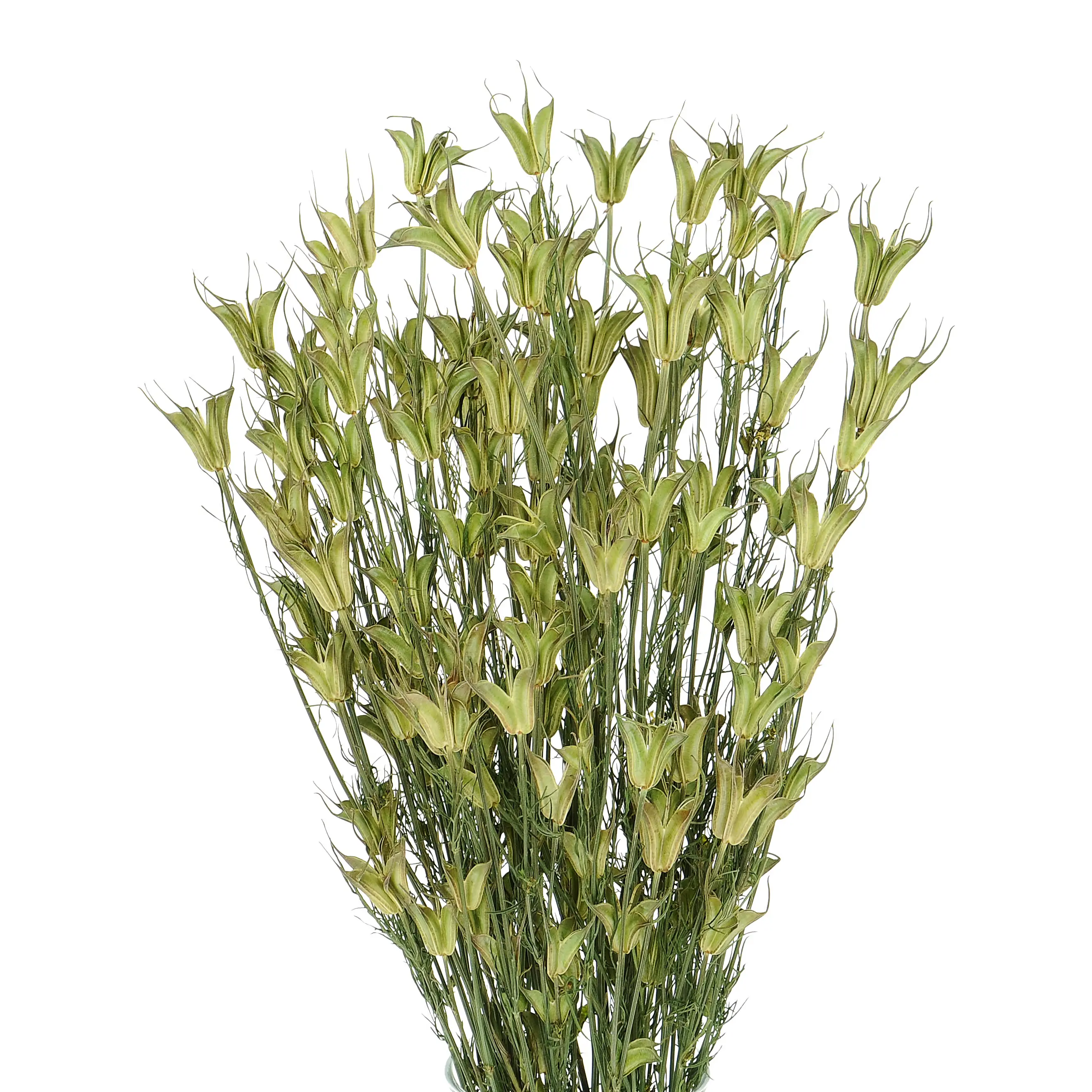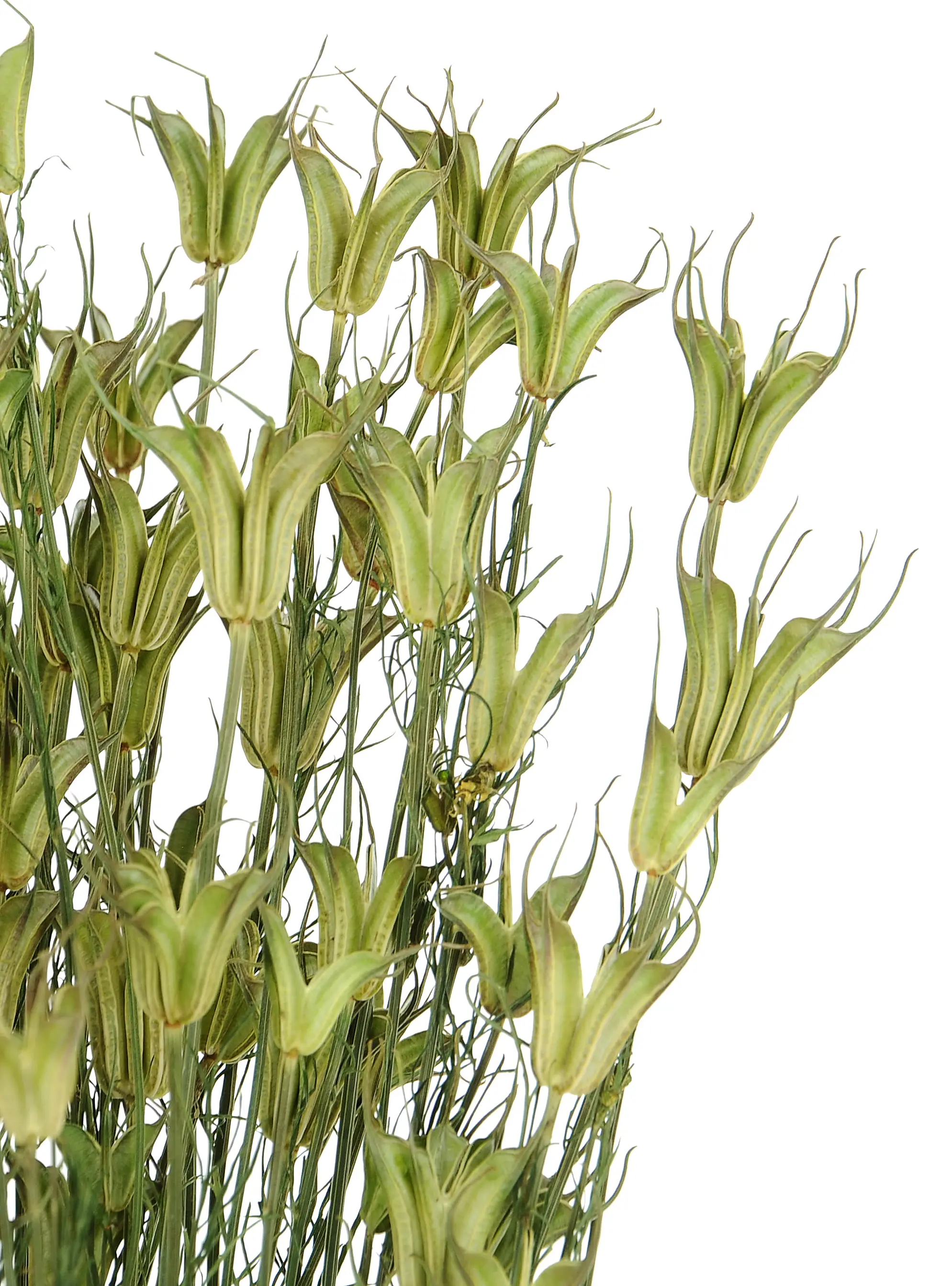 Nigella orientalis - eine getrocknete Pflanze, deren zierlichster Teil nicht die Blüten, sondern das Perikarp ist. Sie erscheinen nach der Blüte der Pflanze und ähneln Kronen. In ihrer natürlichen Version ist die getrocknete Nigella sicher eine gute Ergänzung für jede saisonale Komposition. Sie kann ein interessantes Highlight in Sträußen, Kränzen und Gestecken sein. Nichts spricht dagegen, sie als Vasenschmuck zu verwenden, entweder allein oder in Kombination mit anderen Trockenpflanzen.