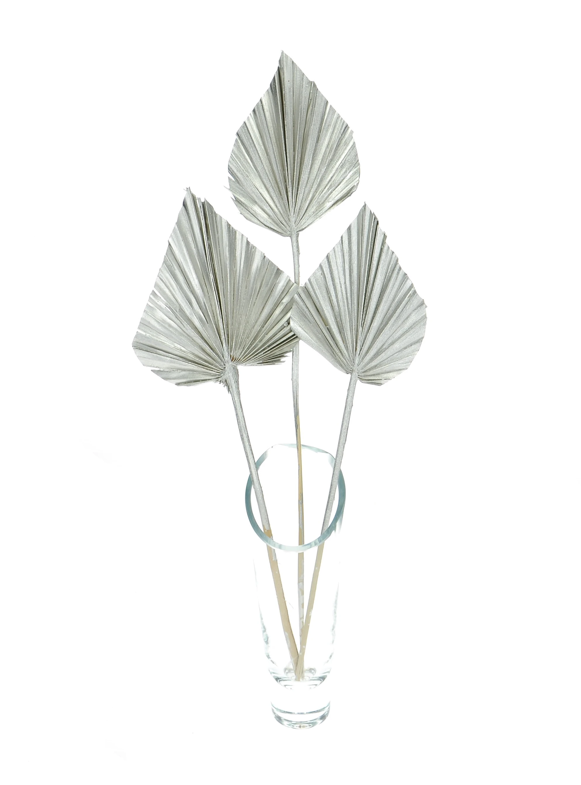 Getrocknete Palmblätter sehen aus wie kleine Fächer oder Pfeile. Neben den natürlichen und gebleichten Palmblättern haben wir auch silberne Blätter in unser Sortiment aufgenommen. Sie bringen Abwechslung in Innenräume mit einem Stil, der von Boho bis Glamour reicht. Sie können auch als dekorativer Akzent bei Veranstaltungen im Bali- oder Hawaii-Stil verwendet werden.