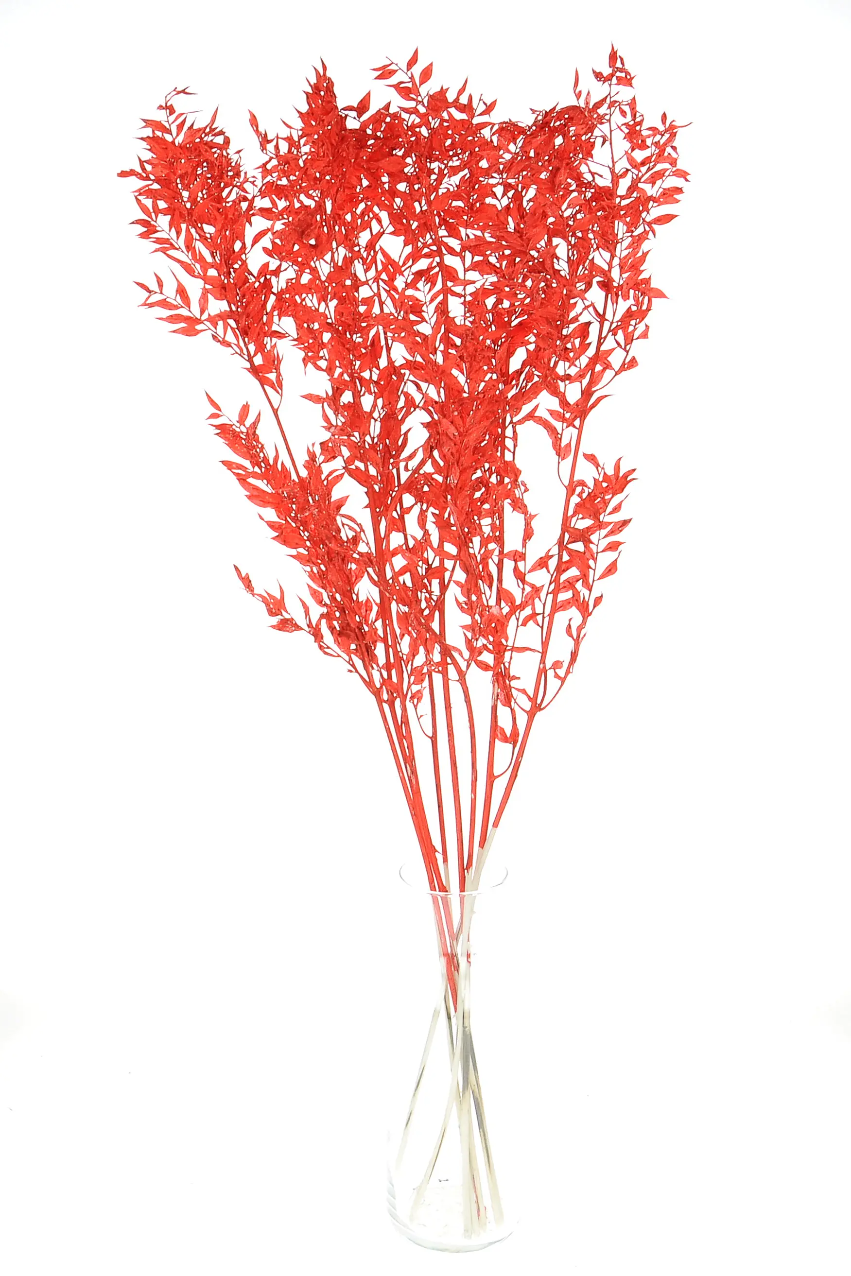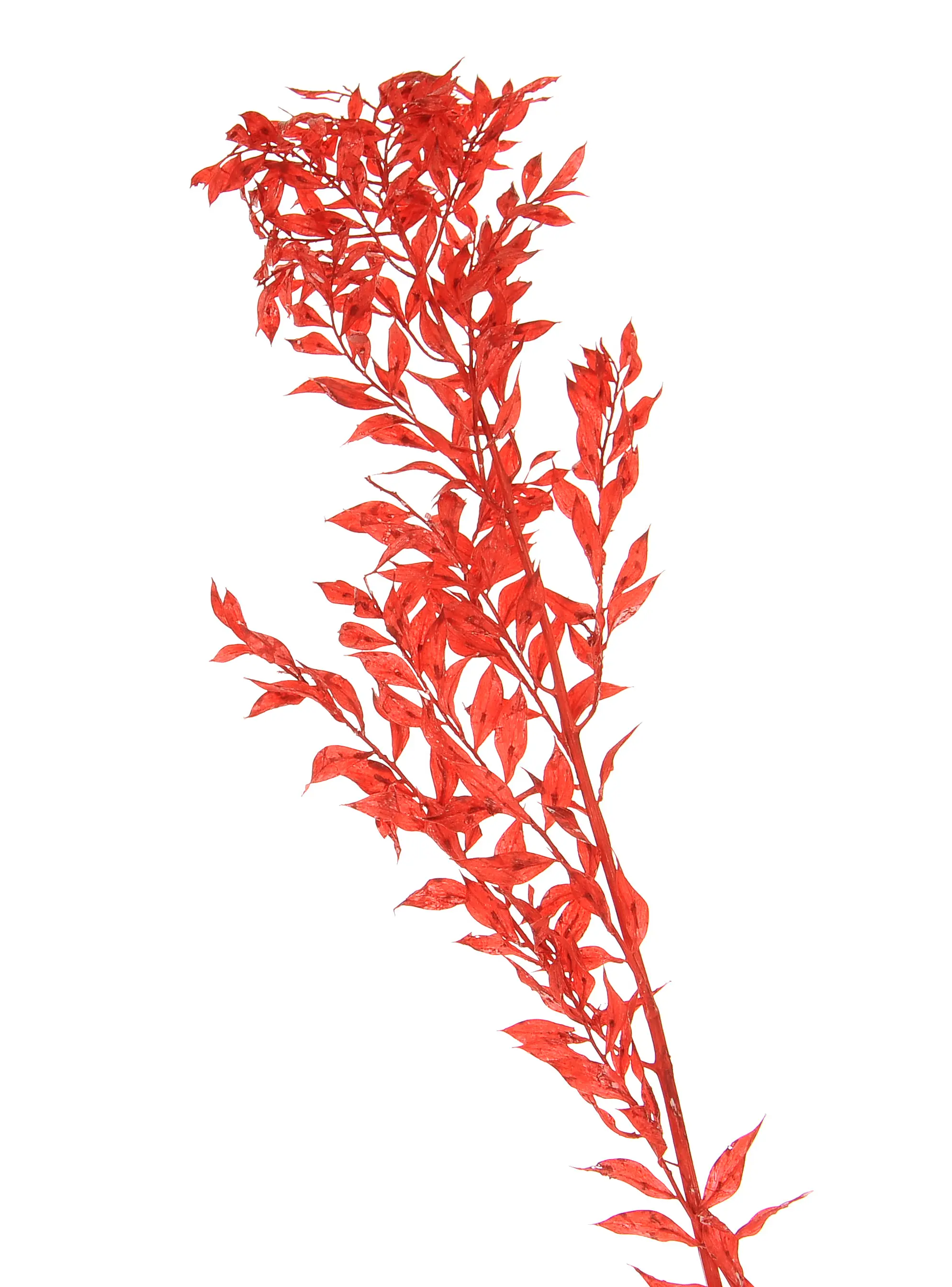 Ruscus - er hat kleine, ziemlich steife, rot gefärbte Blätter. Stabilisierter Ruscus ist eine vielseitige Pflanze und einer unserer Verkaufsschlager. Er eignet sich perfekt als Ergänzung oder Füllung für alle Arten von Blumenkompositionen: Kränze, Sträuße, Schilf oder Cloche-Dekorationen. Stabilisierter roter Ruscus ist auch eine ideale Wahl für Herbst- und Weihnachtsdekorationen.