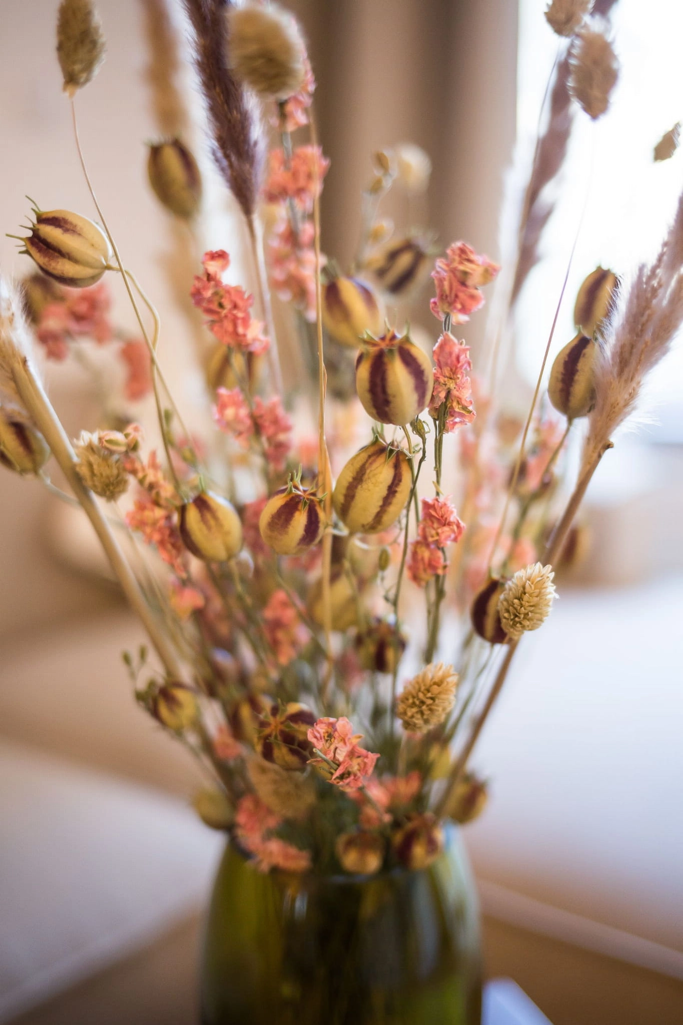 Set von Trockenblumen für Vase - Nigella, Rittersporne, Phalaris, Pampasgras