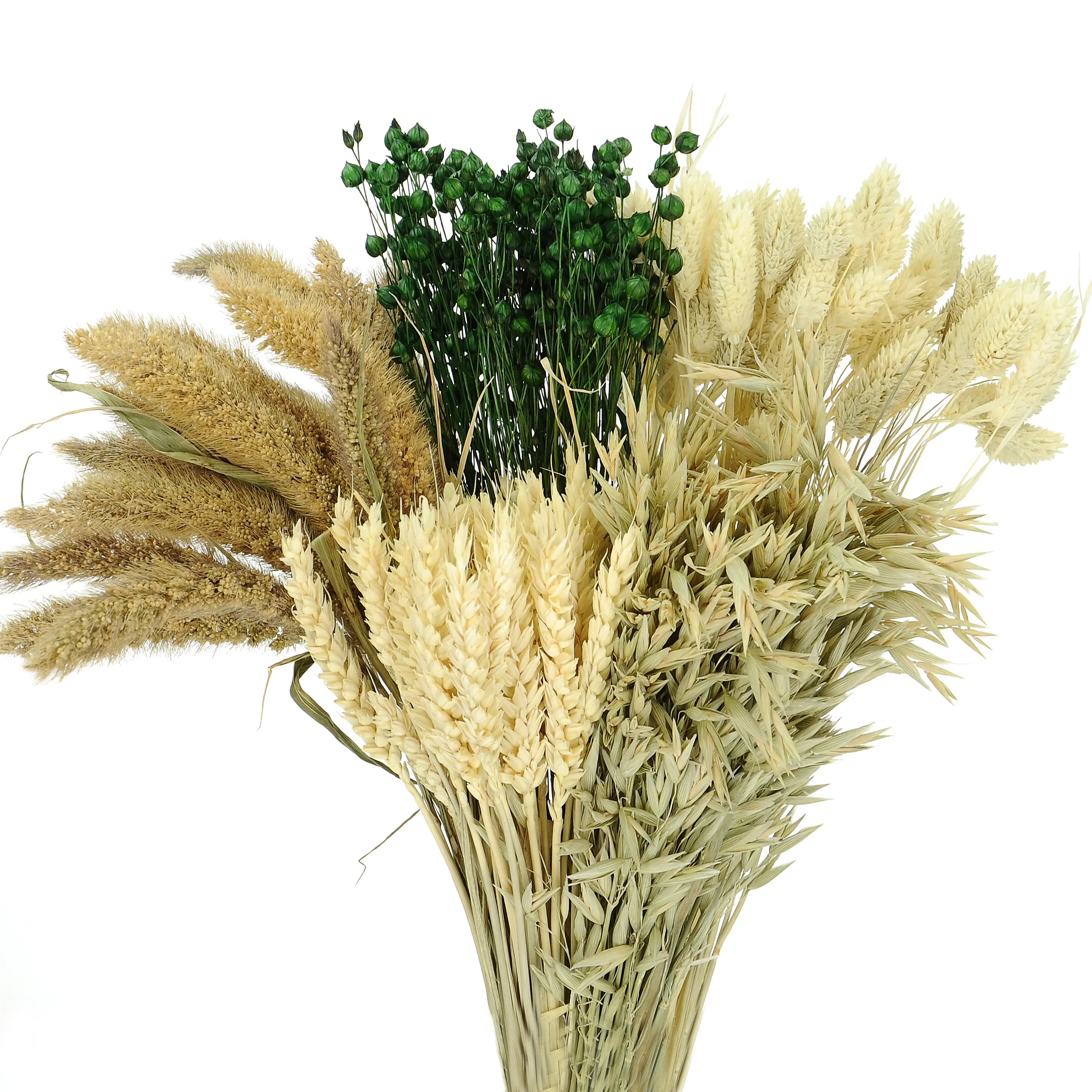 Set von Trockenblumen für Vase - Phalaris, Strohblumen, Weizen