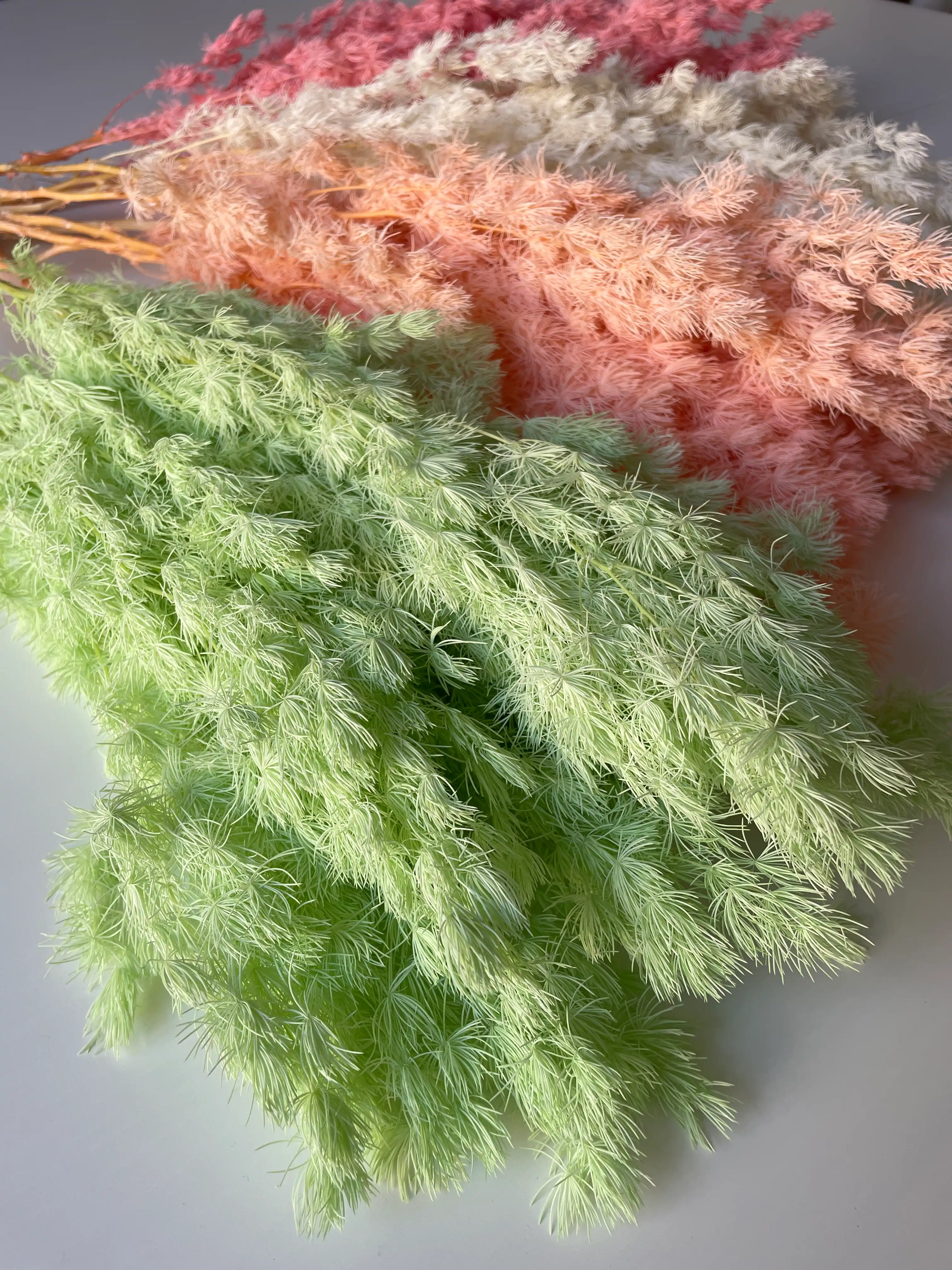Der Strauß aus stabilisiertem Spargel enthält sowohl längere als auch kürzere Zweige. Jedes Bündel ist unterschiedlich in Struktur, Größe und Ausbreitung.