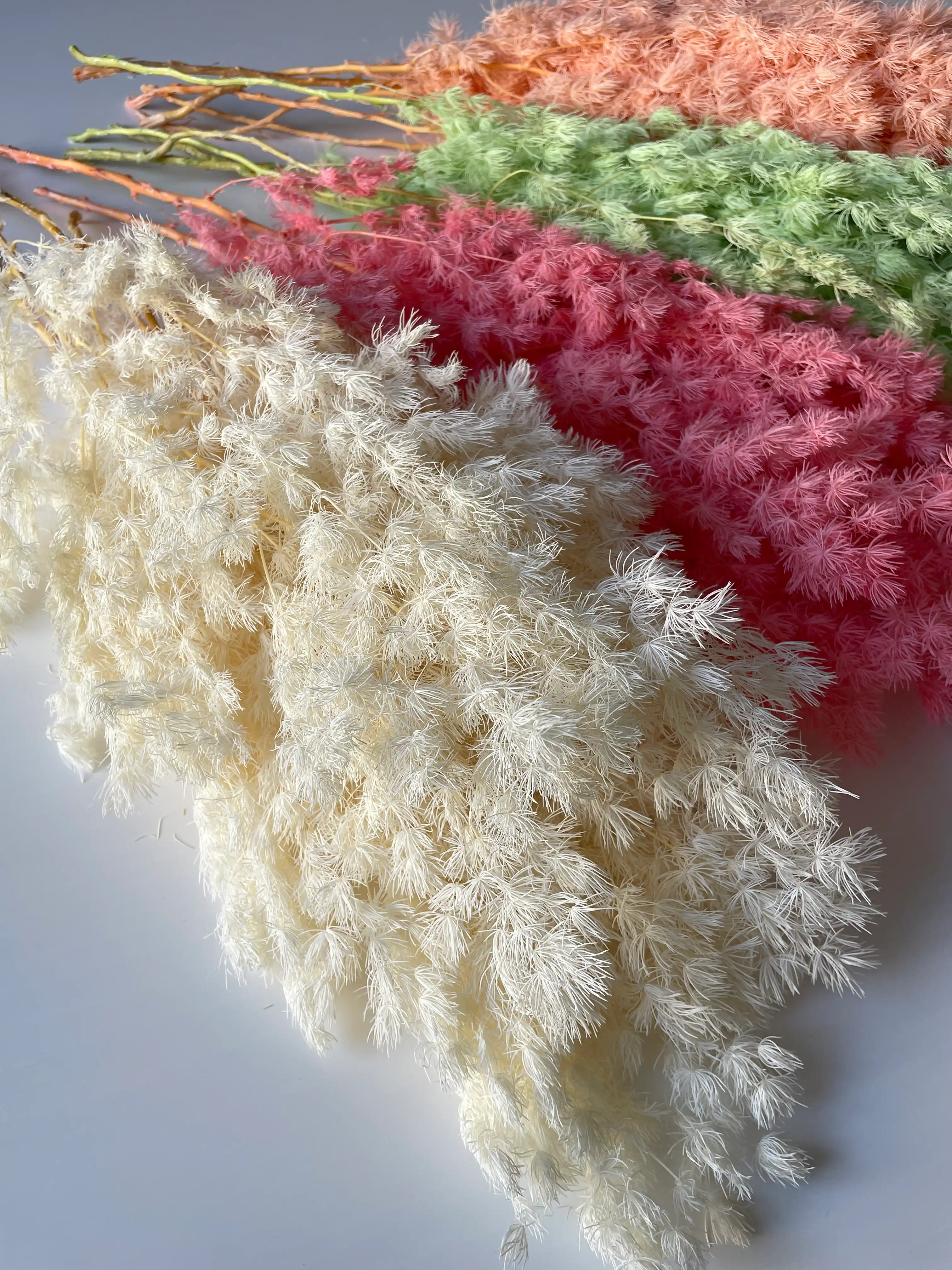 Der Strauß aus stabilisiertem Spargel enthält sowohl längere als auch kürzere Zweige. Jedes Bündel ist unterschiedlich in Struktur, Größe und Ausbreitung.