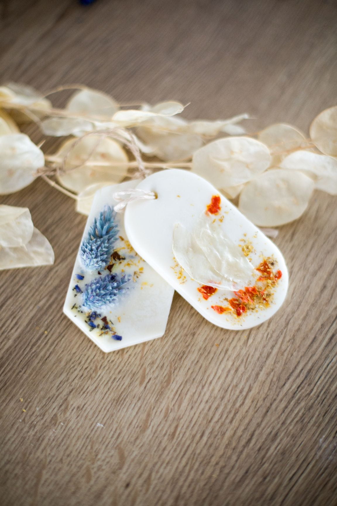 Was geschieht mit den Blumen, die beschädigt sind oder leicht von unseren üblichen Standards abweichen? Im Einklang mit der Idee der Abfallvermeidung haben wir beschlossen, aus ihnen originelle duftende Soja-Anhänger herzustellen. Sie werden in Polen handgefertigt und bestehen nur aus Sojawachs, natürlichen ätherischen Ölen und getrockneten Pflanzen. Sie können auf zwei Arten verwendet werde: